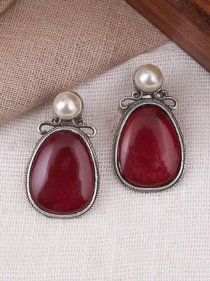 Vintage Charm Red Stone & Pearl Stud Earring