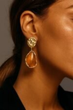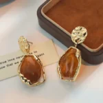 Tags: Gold drop earrings, Lightweight statement earrings, Resin gemstone earrings, Trendy resin earrings, Unique statement earrings