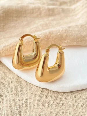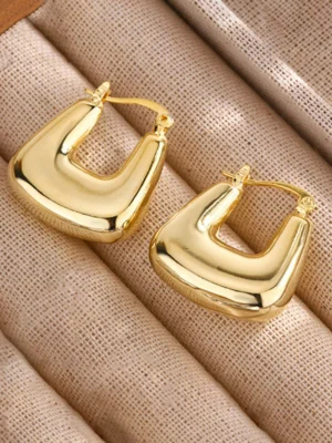 Gold Plated Anti Tarnish Chunky Geometric Statement Hoop Earring