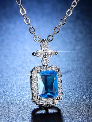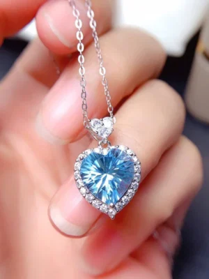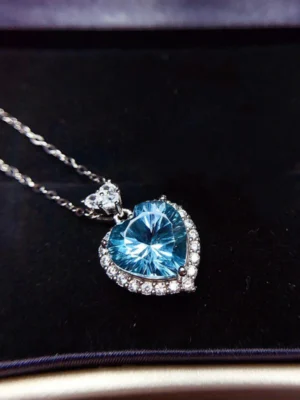 Sparkling Blue Heart-Cut Crystal Pendant Necklace with Silver Chain