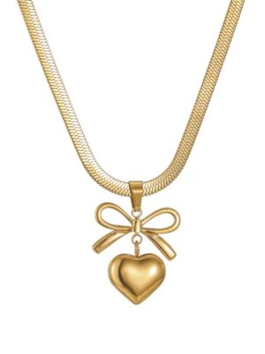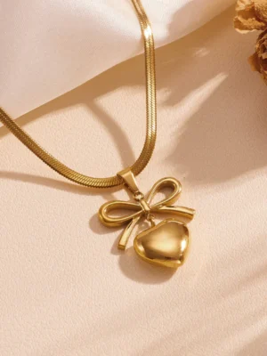 Gold Plated Anti Tarnish Bow Knot Heart Themed Pendant