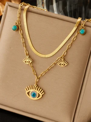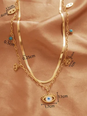 Gold-Plated Anti-Tarnish Dual Strand Evil Eye Necklace