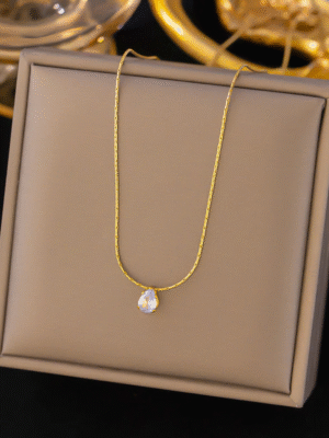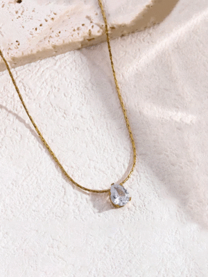 Elegant Teardrop Pendant Necklace – 18K Gold-Plated with Clear Crystal
