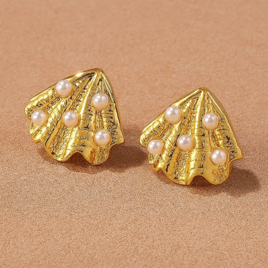 SKU: NJ0073 Categories: Earring, Jewellery Tags: beach earrings, elegant stud earrings, gold pearl earrings, gold shell stud earrings, imitation pearl jewelry, nautical fashion accessories, ocean-inspired jewelry, pearl shell earrings, seashell earrings, summer gold earrings
