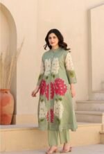 Tags: A-line kurta with pants, casual indian outfit for women, cotton kurta with pants, designer kurta set for women, elegant ethnic wear for women, festive wear kurta set, green floral kurta set, indian ethnic wear online, kurta set with floral print, lightweight kurta for summer, party wear kurta set for women, printed kurta and pant set, stylish kurta set online shopping, summer ethnic wear for ladies, trendy kurta pant set