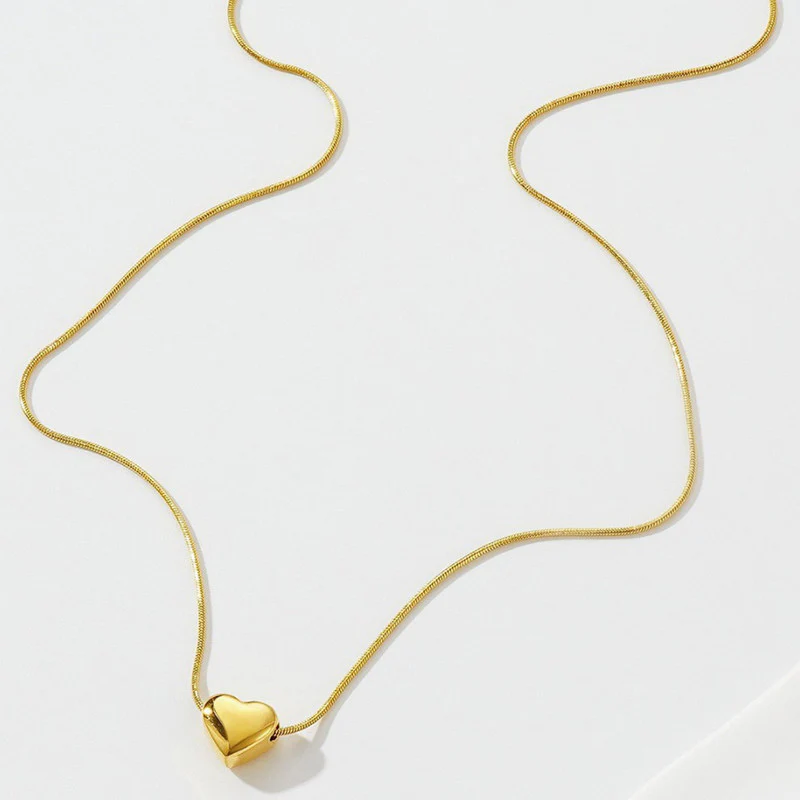 Fall in love with simplicity and timeless elegance with our Golden Heart Pendant Necklace. Designed with a sleek snake chain and a polished heart charm, this piece is perfect for everyday wear or special occasions.