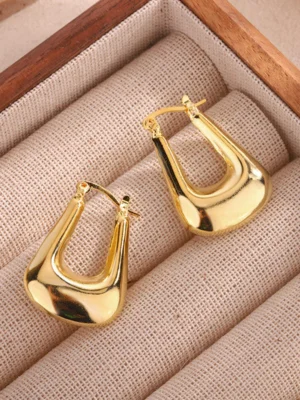 Gold Plated Anti Tarnish Chunky Geometric Statement Hoop Earring