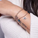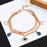 Stainless Steel Rose Gold Plated Stainless Steel Crystal Studded Evil Eye Bracelet