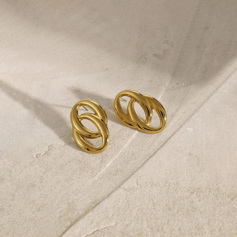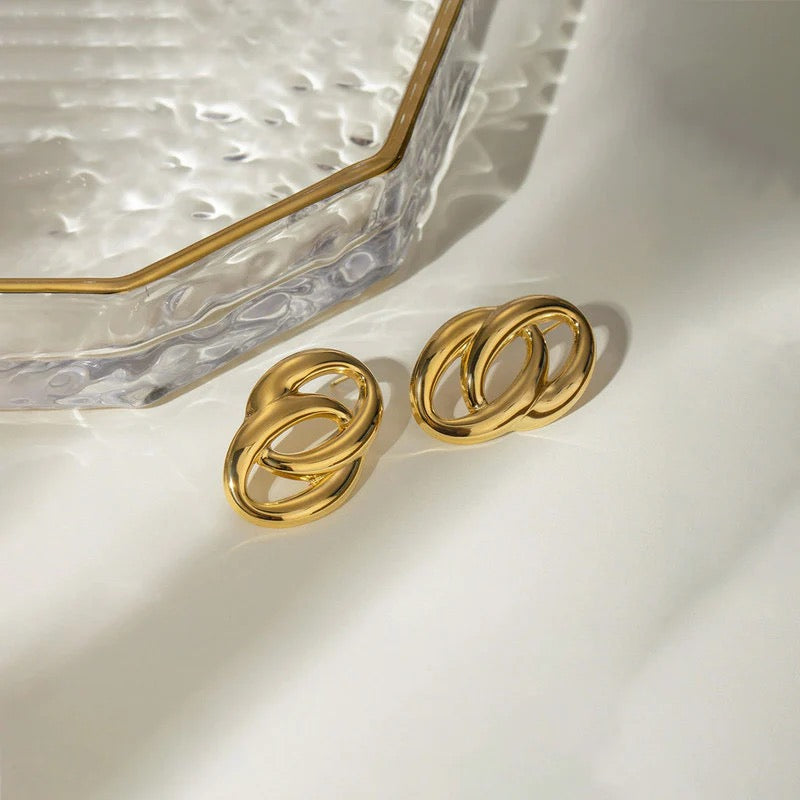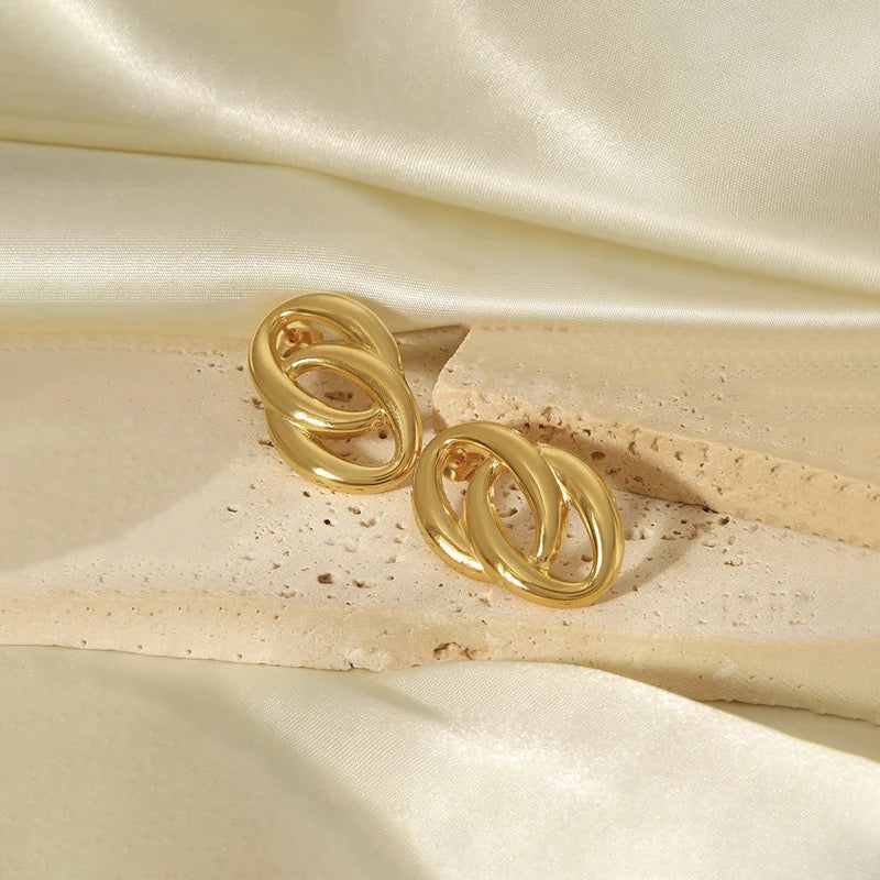 Anti Tarnish Gold Interlock Loop Stud Earring