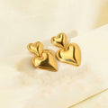 Make a chic and romantic statement with these bold double-heart gold earrings. Featuring a sleek, glossy finish, each earring showcases two connected hearts — a smaller heart on top and a larger heart below — creating a stylish layered silhouette that instantly elevates any look.