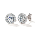 Add timeless elegance to your jewelry collection with these stunning halo-cut crystal stud earrings. Featuring a dazzling round center stone surrounded by a radiant halo of smaller crystals, these earrings deliver maximum sparkle from every angle. The silver-toned setting enhances the brilliance of each stone, making them perfect for both everyday wear and special occasions.
