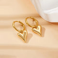 Add a romantic, stylish touch to your jewelry collection with these chic gold heart charm hoop earrings. Featuring sleek mini hoops paired with elongated sculpted heart pendants, these earrings blend modern elegance with playful charm. The high-polish gold finish enhances their shine, making them perfect for both casual and dressy looks.