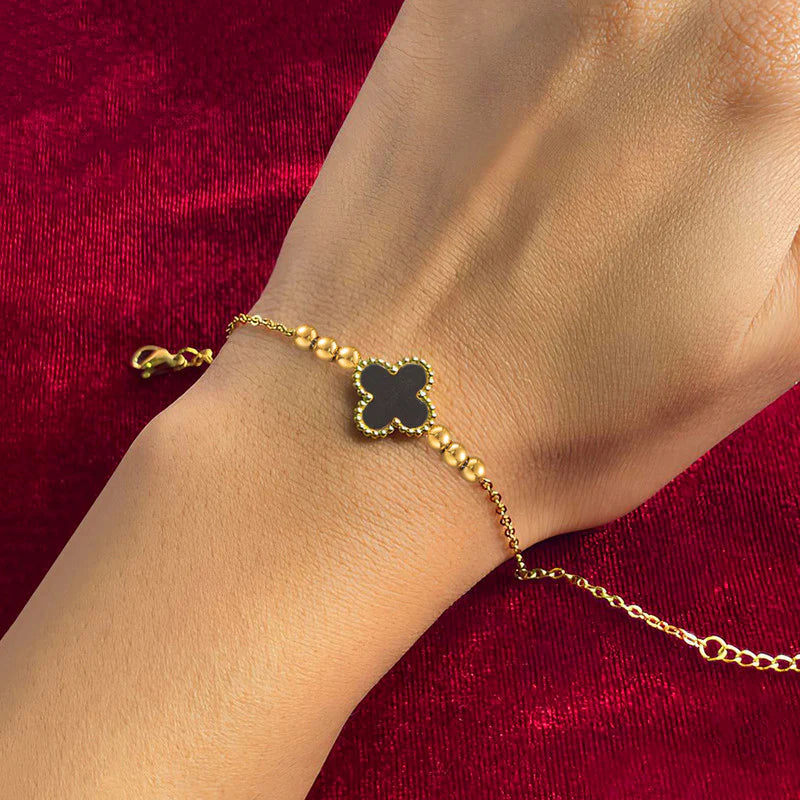 Whether worn alone or layered with other bracelets, this clover charm piece brings sophistication and good-luck symbolism to your everyday style.
