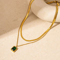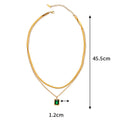 Gold-Plated Anti Tarnish Green Emerald Geometric Layered Necklace