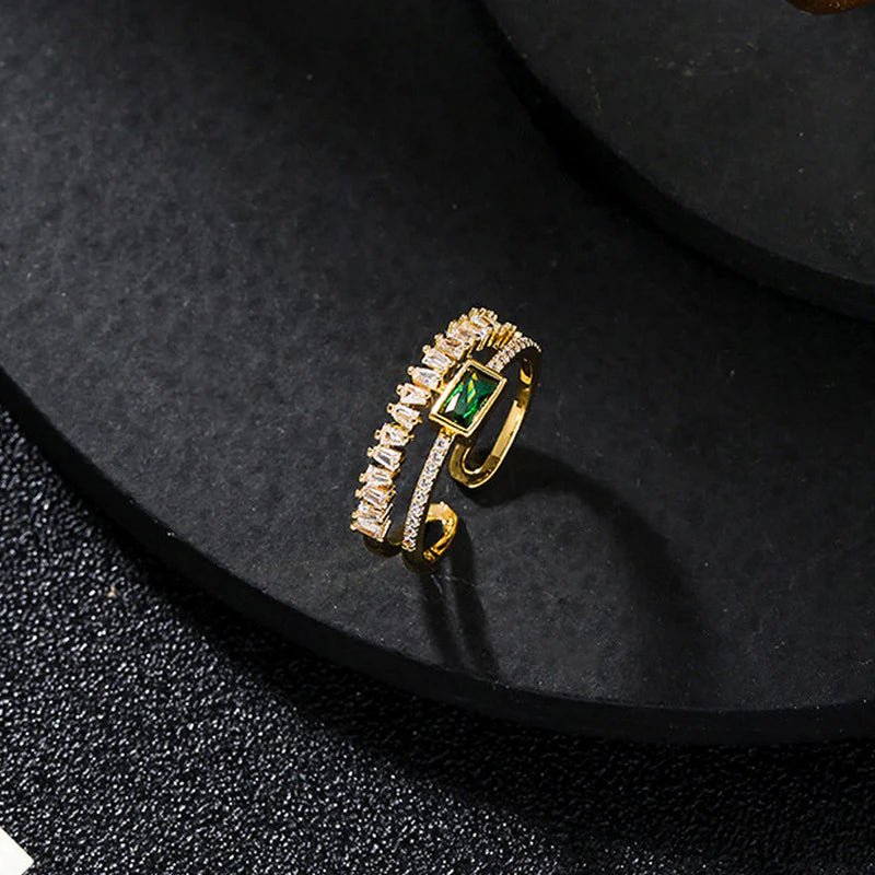 Gold Plated Stainless Steel Anti Tarnish Green Emerald Studded Adjustable Finger Ring