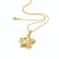 Gold Star Pendant Necklace with Pearls – Textured 18K Gold-Plated Chain