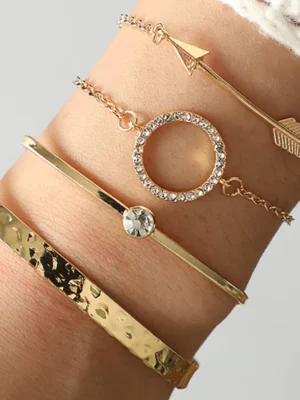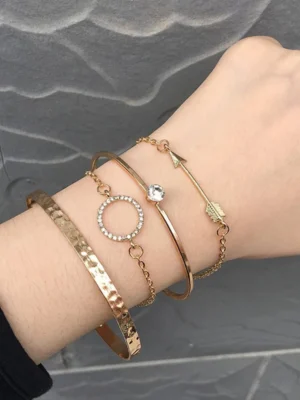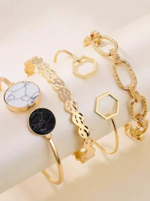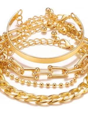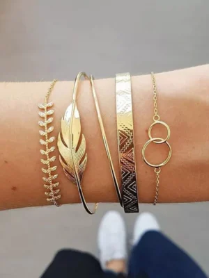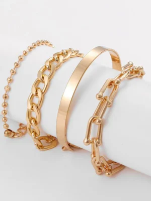 Gold Plated Geometric Stackable Korean Bracelet (Pack of 4)