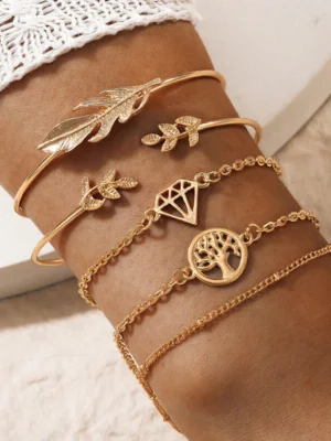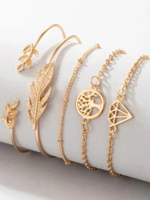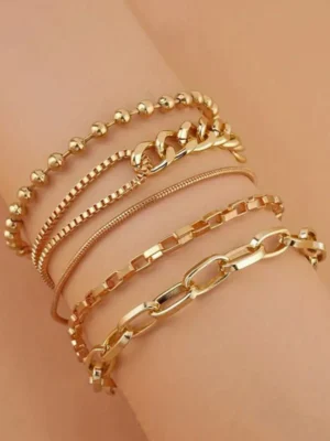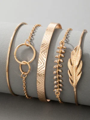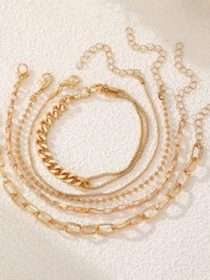 Gold Plated Toned Contemporary Stackable Bracelet (Pack of 5)