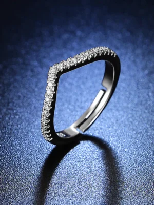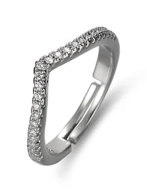 Silver Plated American Diamond Studded V Shape Anti Tarnish Adjustable Finger Ring