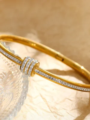 Stainless Steel Gold Plated American Diamond Studded Bangle Style Anti-Tarnish Bracelet