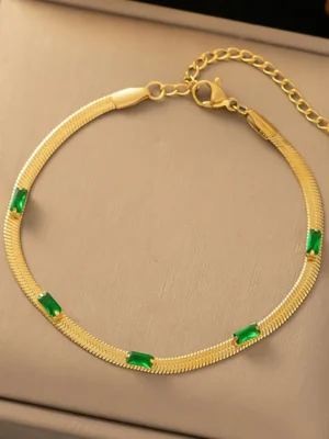 Gold Plated Stainless Steel Anti Tarnish Snake Chain Green Emerald Studded Wraparound Bracelet