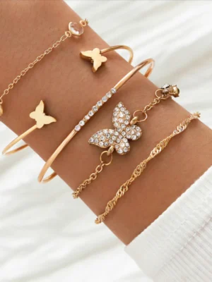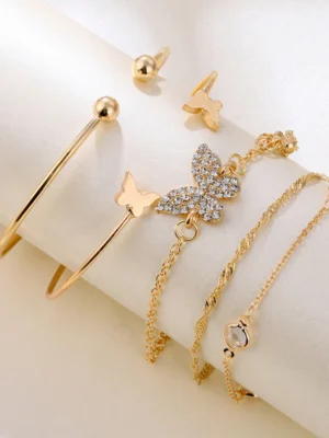 Gold-Plated Butterfly inspired Set of 5 Contemporary Stackable Bracelet Set