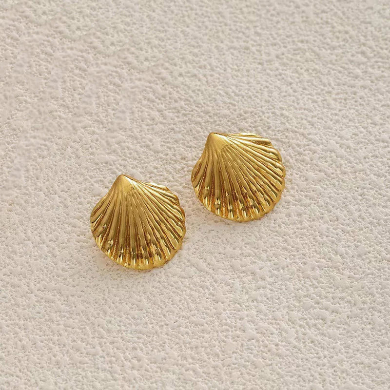 Anti-Tarnish Gold Scallop Shell Stud Earring