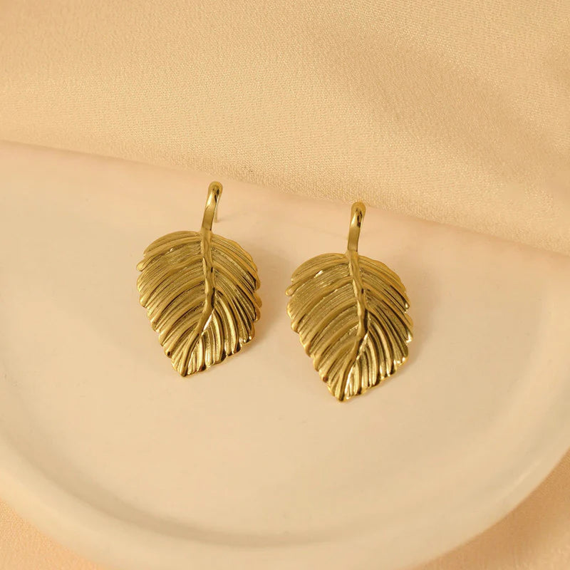Anti-Tarnish Gold Leaf Drop Earring