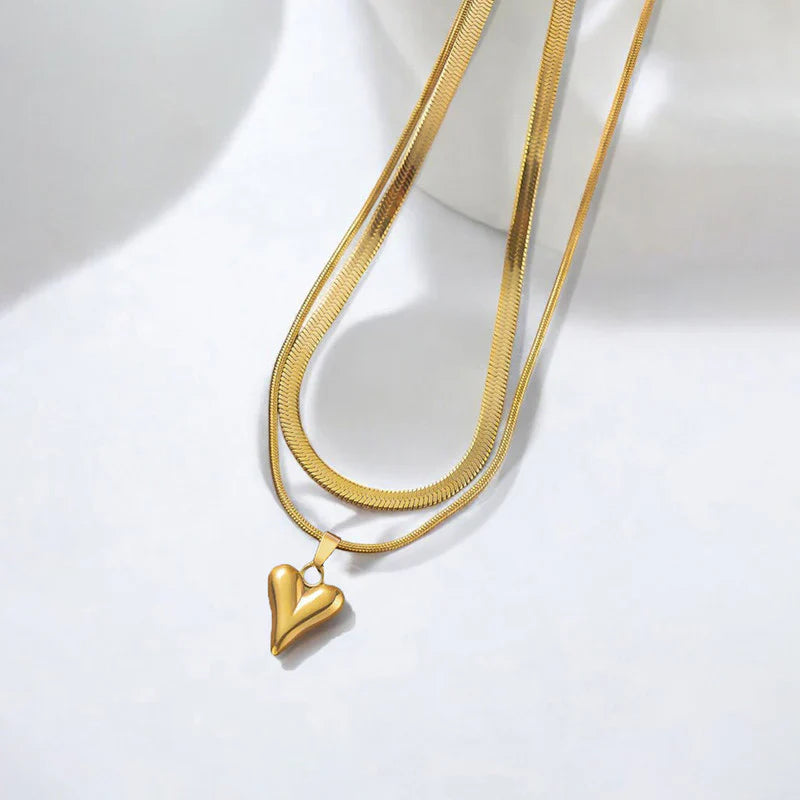 Elegant Double-Layer Gold Necklace with Heart Pendant
