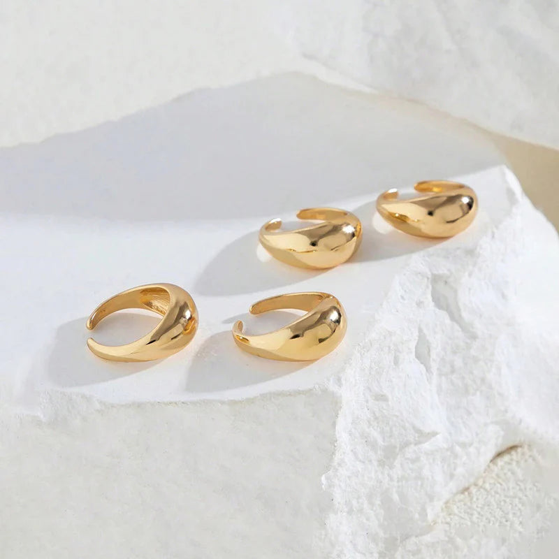 Crafted with a premium anti-tarnish finish, each ring is designed to maintain its radiant gold shine while resisting fading and discoloration. The smooth, rounded silhouette provides a comfortable fit, making them perfect for daily wear.
