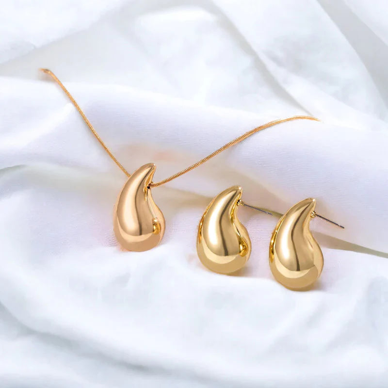 Luxe Anti-Tarnish Gold Droplet Necklace & Earring Set