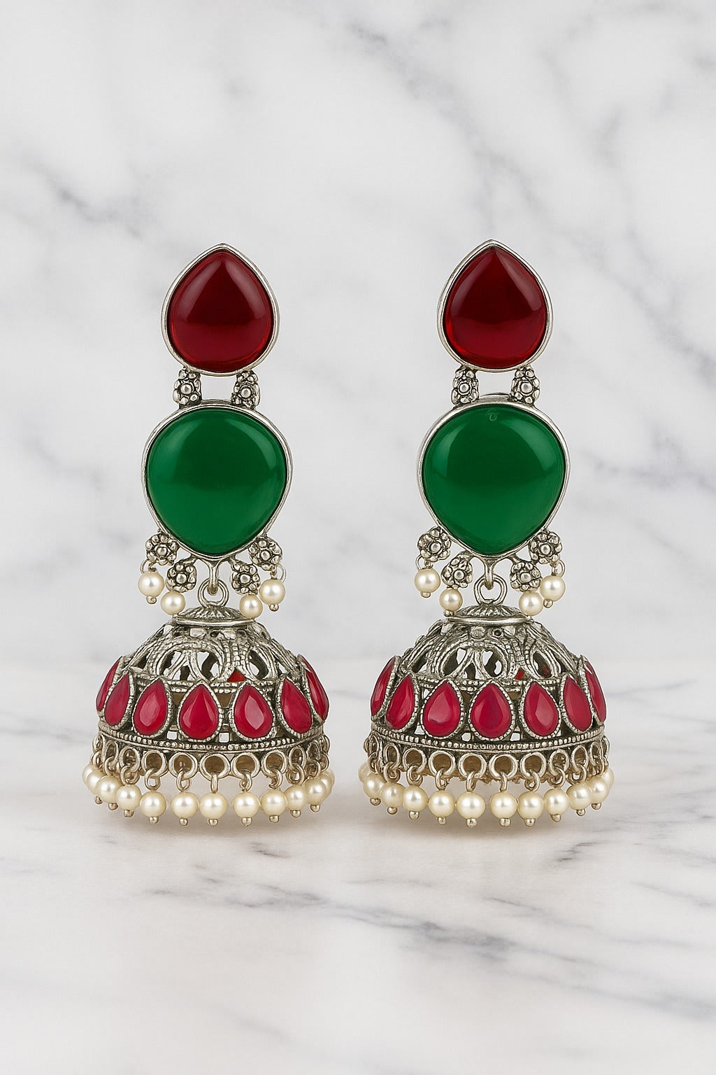 - Classic Jhumka with detailed artistry