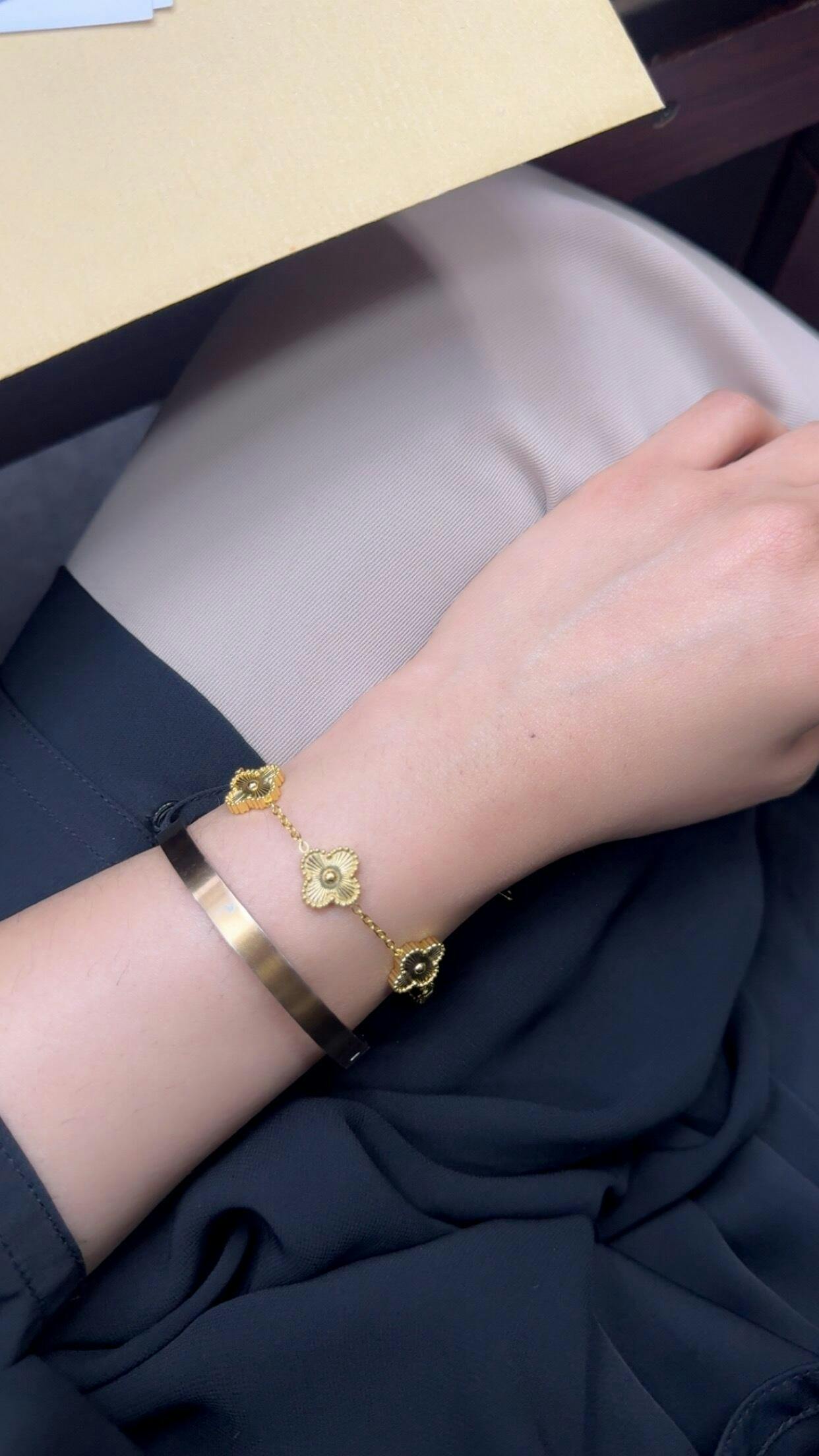 Stainless Steel Gold Plated Golden Anti Tarnish Clover Bracelet