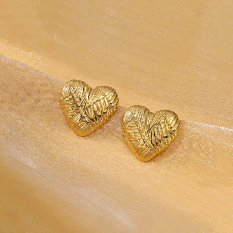 Textured Gold Heart Stud Earring